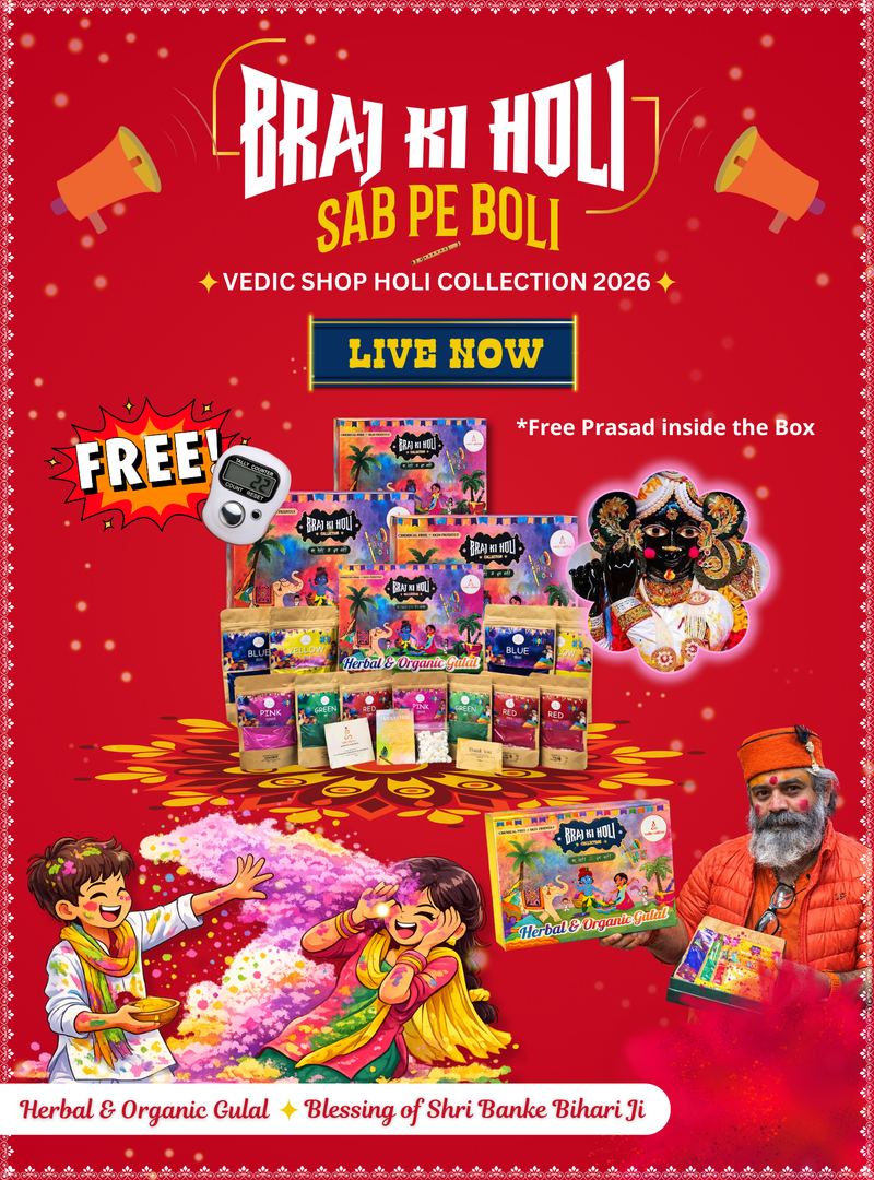 Braj Ki Holi – Herbal & Natural Gulal Pack (5 Colours) (Pouch)| Free Japa Counter | Shree Banke Bihari Ji Prashad Included