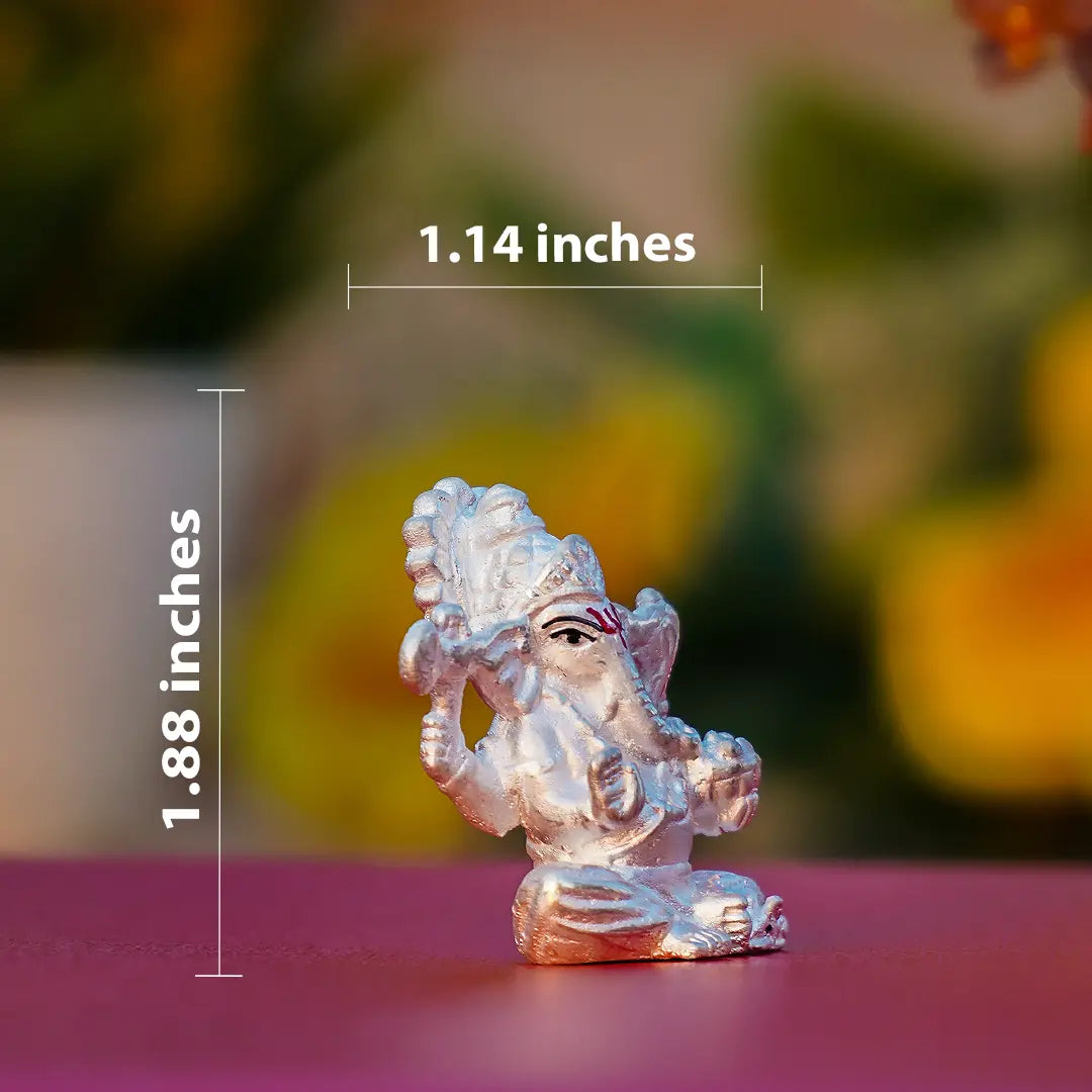 This elegant Ganesh Ji Idol by Vedic Vaibhav is a divine symbol of wisdom, success, and good fortune. Cast in 999 certified pure silver and weighing 12.170 grams, this idol captures the graceful posture of Lord Ganesha, adorned with fine detailing and delicate red markings on the forehead and eyes. Perfect for pooja altars, Diwali rituals, or sacred gifting, this miniature murti blends traditional beauty with certified purity. A timeless spiritual keepsake that brings positivity and auspiciousness to any setting. Crafted with 999 pure certified silver Gross Weight: 12.170 grams Hand-finished with red tilak and eye accents Ideal for home temples, festive gifting, or spiritual rituals Comes with authenticity certificate from Vedic Vaibhav Compact and divine design for all sacred spaces