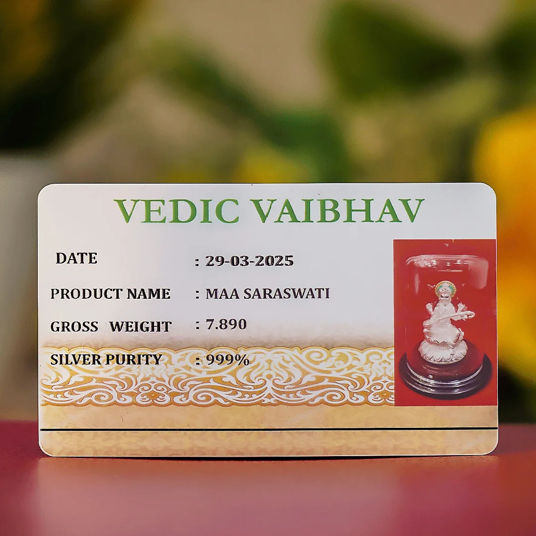 The 999 Silver Goddess Saraswati Idol is a magnificent handcrafted masterpiece made from 99.9% pure silver, symbolizing wisdom, knowledge, creativity, and learning. Goddess Saraswati is the divine embodiment of intellect, arts, music, and education, making this idol perfect for home temples, study rooms, and workspaces. ✨ Features: 🪙 999 Pure Silver Craftsmanship🧾 Certified Purity with Official Document💎 BIS Hallmarked for Guaranteed Authenticity ✅ Handcrafted with intricate detailing✅ Symbolic Representation: Goddess Saraswati seated on a lotus, holding the veena (musical instrument), sacred scriptures, and blessing hand✅ Best for Students, Artists, Writers, and Scholars✅ Ideal for Daily Worship, Festivals, and Home Decor✅ Perfect Gift for Vasant Panchami, Housewarming, and Academic Achievements✅ Brings Divine Blessings for Success and Enlightenment ✨ Placement & Vastu Tips: Place in the northeast or east direction for maximum spiritual benefits. Ideal for study rooms, workspaces, and puja altars. Avoid placing in bathrooms or directly on the floor. ✨ Care Instructions: Clean with a soft cloth or silver polish for long-lasting shine. Avoid direct contact with water, chemicals, and extreme humidity.