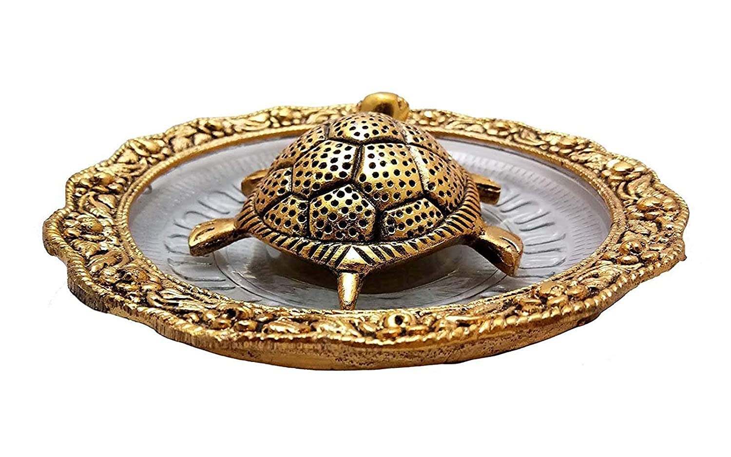 A stunning Golden Glass Tortoise Plate, symbolizing longevity, stability, and prosperity. A must-have for homes and offices!" ✨ Product Description: 💰 Symbol of Wealth & Stability: In Vastu and Feng Shui, the tortoise represents long life, stability, protection, and prosperity, making it a powerful good luck charm. ✨ Premium Craftsmanship: Made with a golden tortoise sitting on a high-quality transparent glass plate, blending elegance with spiritual significance. 🏠 Ideal Placement:✔ Place in the North zone of your home or office for career success & financial growth.✔ Keep in the living room or entrance to attract good fortune & stability.✔ Suitable for pooja rooms, work desks, and cash registers. 🌟 Elegant & Decorative: The shimmering gold finish adds a touch of luxury and positivity to any space. 💎 High-Quality & Durable: Crafted with premium metal & glass, ensuring long-lasting shine, non-corrosive, and easy maintenance. 🎁 Perfect Gift Choice: A meaningful gift for loved ones on special occasions like Diwali, housewarmings, business openings, or birthdays.