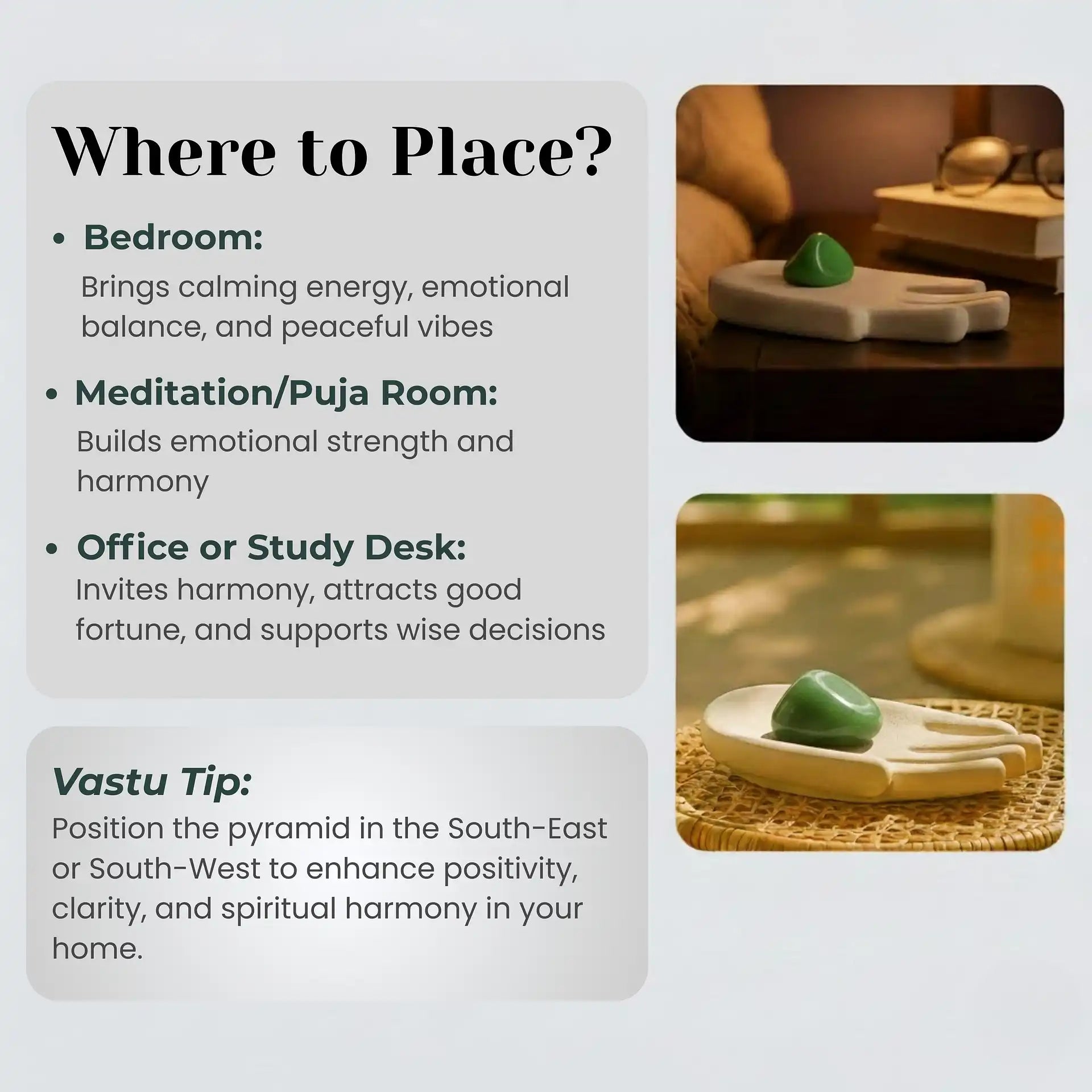 In Vedic astrology, Green Jade is associated with Mercury (Budh). Wednesday, ruled by Mercury, is the most favorable day to start using it.