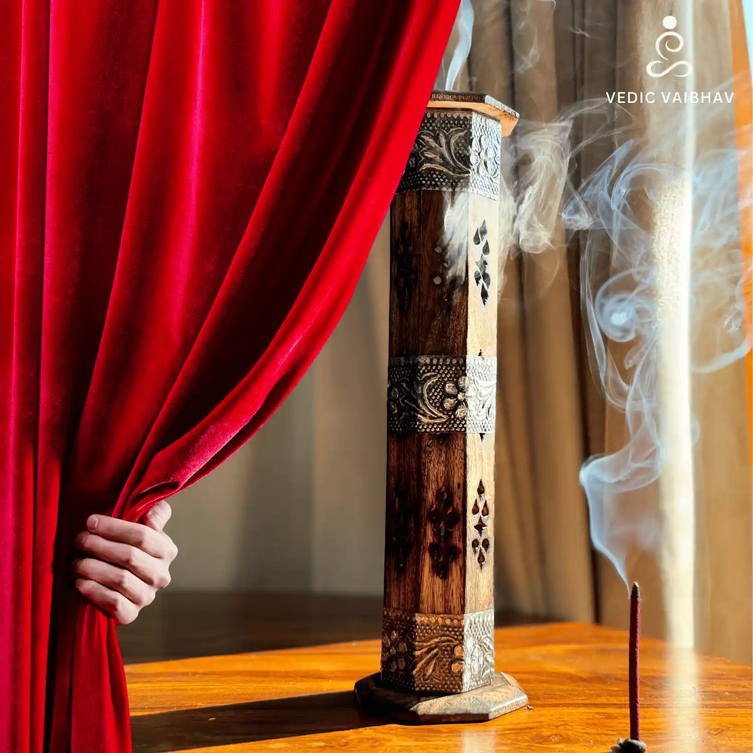 Handcrafted Wooden Antique Agarbatti Box – Tower-Shaped Incense Holder with Storage