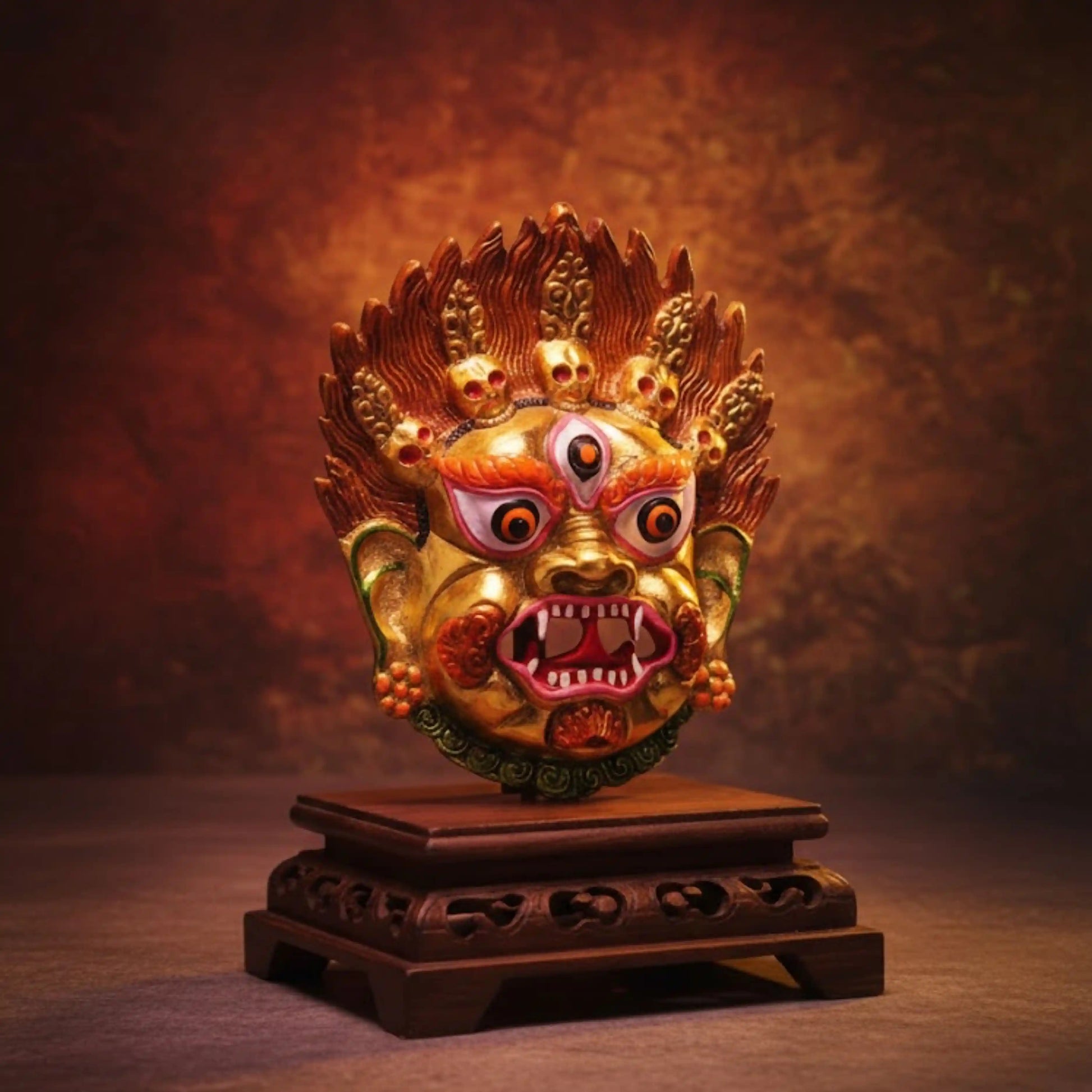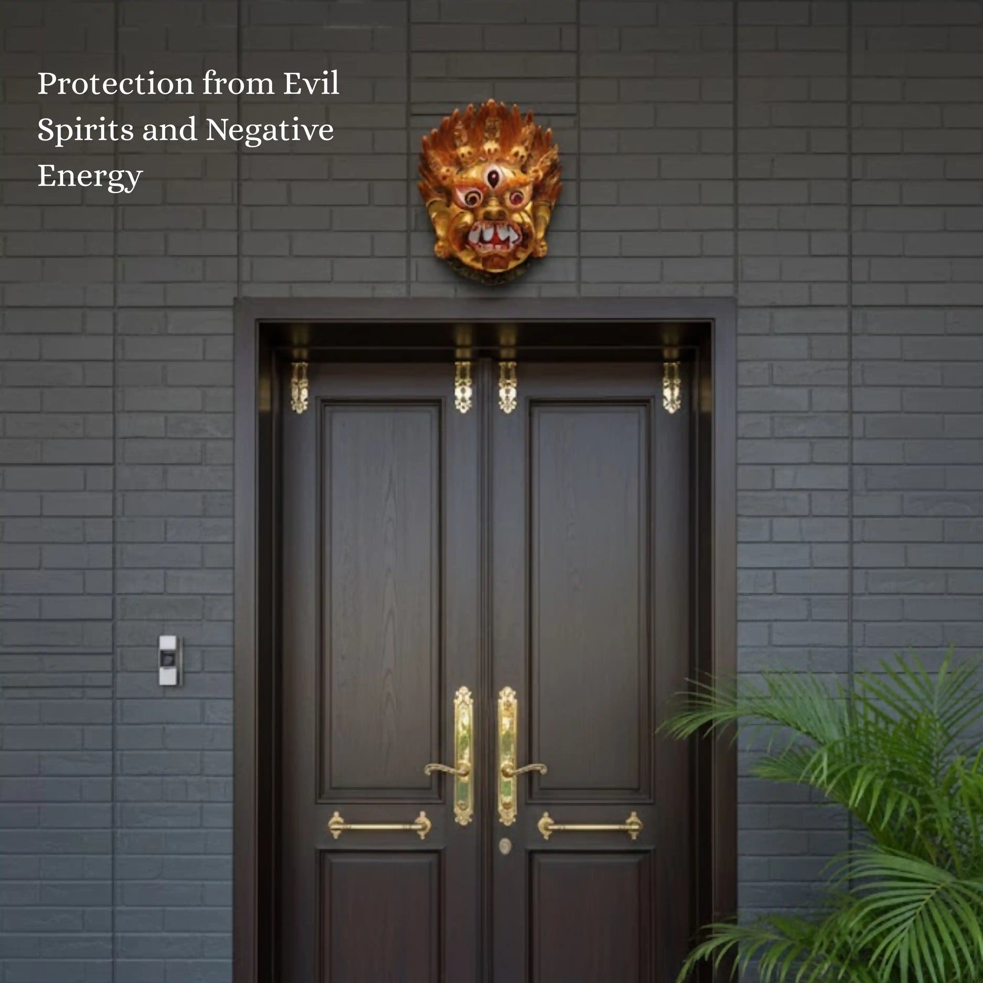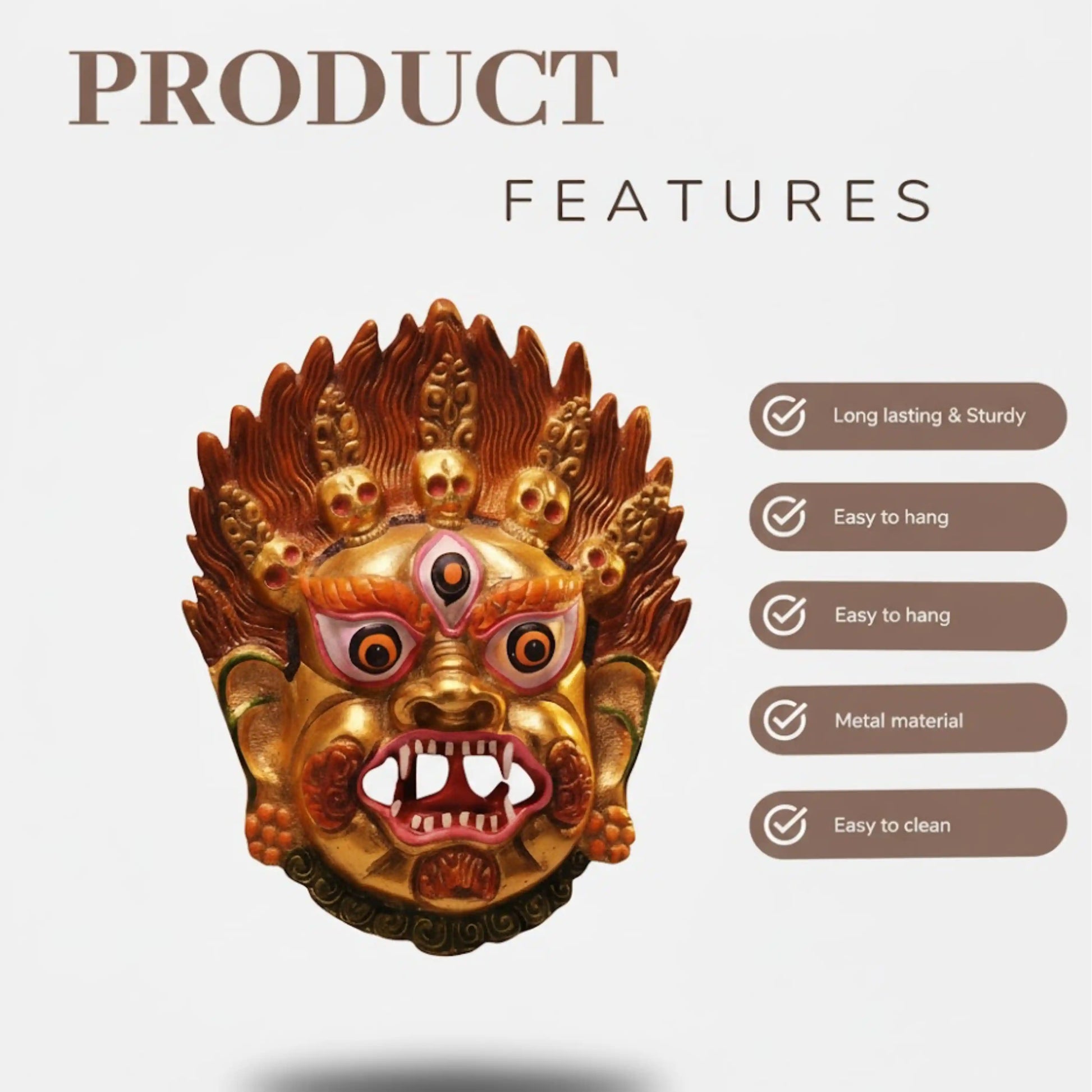 Kirtimukh Wall Hanging — Traditional Guardian Face for Doorways & Altars Bring home an ancient symbol of protection and character with this hand-finish Kirtimukh wall hanging. Cast in durable metal with rich antique-gold and painted accents, this compact guardian mask (12 cm × 11 cm) makes a striking addition to doorways, puja corners, balconies, or gift boxes — adding both cultural flair and a sense of sacred presencCompact metal Kirtimukh (12×11 cm) with antique-gold finish and painted details. Easy to hang, long-lasting and simple to clean — traditionally believed to ward off negative energies and protect the home. Key features Dimensions: 12 cm (height) × 11 cm (width) — ideal for doors, gates, altars, and small walls. Material: Sturdy metal construction for durability and weight that feels premium. Finish: Antique-gold tone with hand-painted highlights for authentic, eye-catching detail. Easy to hang: Pre-attached hook or recessed loop — mounts quickly on a nail or screw. Low maintenance: Smooth finish wipes clean with a soft cloth. Cultural significance: Kirtimukh (the “face of glory”) is traditionally placed above entrances and on temple architecture, believed to protect from negative energies and evil spirits.