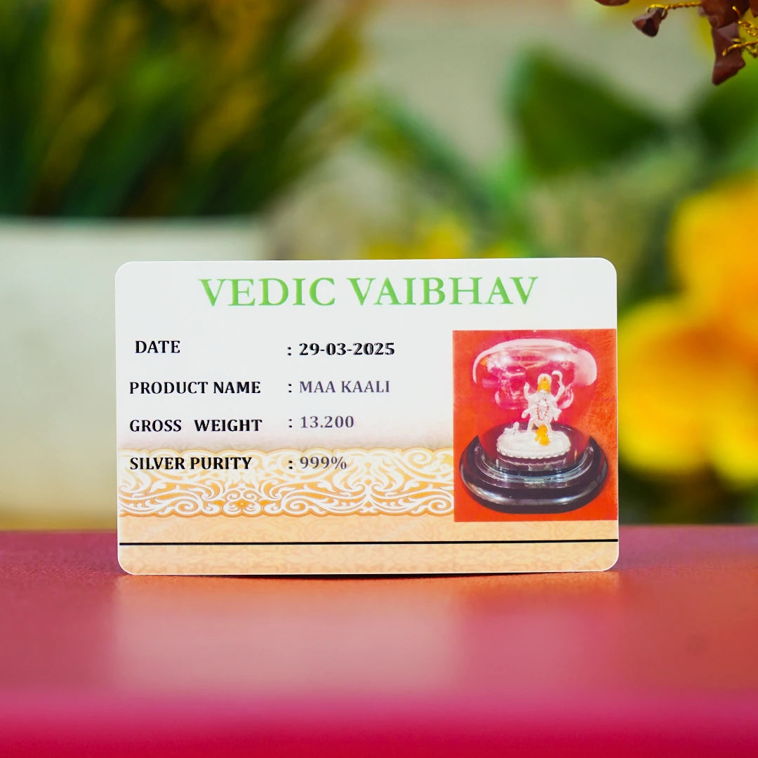 Experience the divine presence of Maa Kaali with this exquisite pure silver idol (999 Silver). Known as the Goddess of Protection and Destruction of Evil, this handcrafted idol is a perfect addition to your home temple, meditation space, or as a spiritual gift. ✨ Features:🪙 999 Pure Silver Craftsmanship🧾 Certified Purity with Official Document💎 BIS Hallmarked for Guaranteed Authenticity ✅ Handcrafted with intricate detailing✅ Symbolic elements: Sword, Trident, Skull Garland, Fierce Expression✅ Perfect for Durga Puja, Navratri, and Spiritual Worship✅ Ideal for Home Temple, Office, or Gift ✨ Care Instructions: Clean with a soft cloth or silver polish Avoid direct contact with water and chemicals