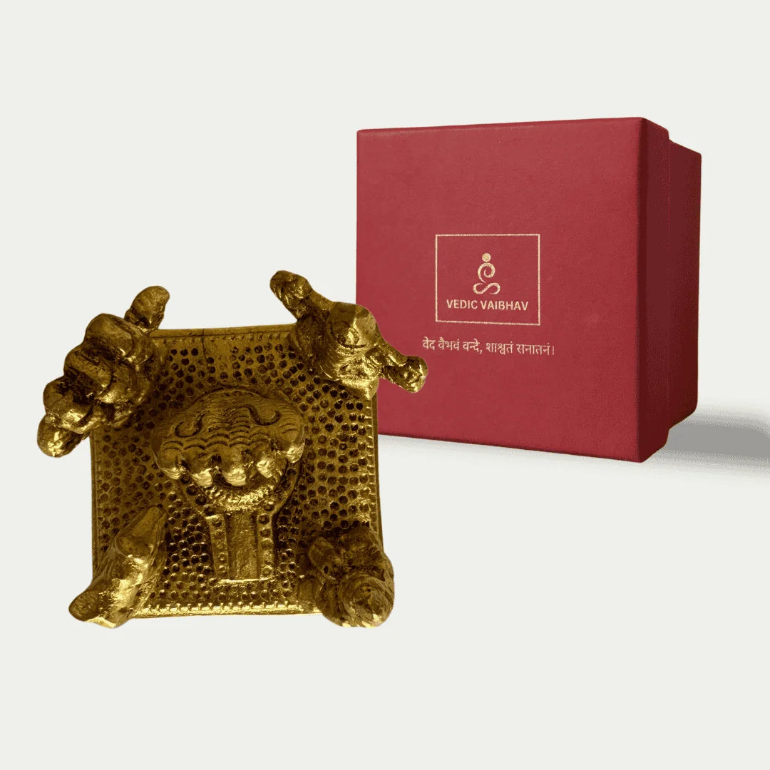 This compact Shiv Parivar brass idol, seated gracefully on a chowki (platform), features Lord Shiva, Goddess Parvati, Lord Ganesha, and Kartikeya, along with Nandi and a multi-hooded serpent (Sheshnag). At just under 2 inches in both height and length, it’s perfect for small home temples, desks, cars, or as a sacred gift. Crafted in solid brass with fine detailing, it brings divine blessings of harmony, strength, and family unity into any space. Detailed depiction of Shiv Parivar on a chowki Dimensions: 1.97 inch (height) × 1.97 inch (length) Handcrafted in solid brass with antique finish Symbol of divine unity, strength, and peace Ideal for small pooja setups, gifting, or spiritual décor