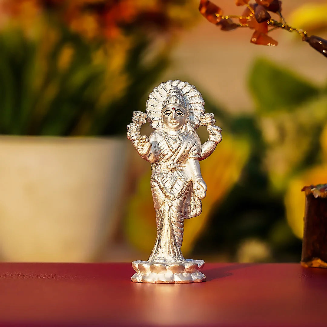 Adorn your sacred space with the divine presence of Shri Laxmi Narayan, beautifully crafted in 999 certified pure silver. This elegant idol set radiates blessings of wealth, preservation, and balance. With detailed facial expressions, symbolic hand gestures, and a polished finish, this duo is perfect for festive worship, spiritual gifting, or pooja altars. The idols come with a BIS hallmark certificate ensuring unmatched purity and authenticity. ✨ Key Highlights ✅ Purity: 999 silver certified by BIS standards 🛕 Design: Intricate sculpture with traditional iconography ✨ Finish: Natural shine enhances divine aura 🧽 Maintenance: Easy to wipe clean and tarnish-resistant 🎁 Best For: Diwali, religious gifting, or temple decor