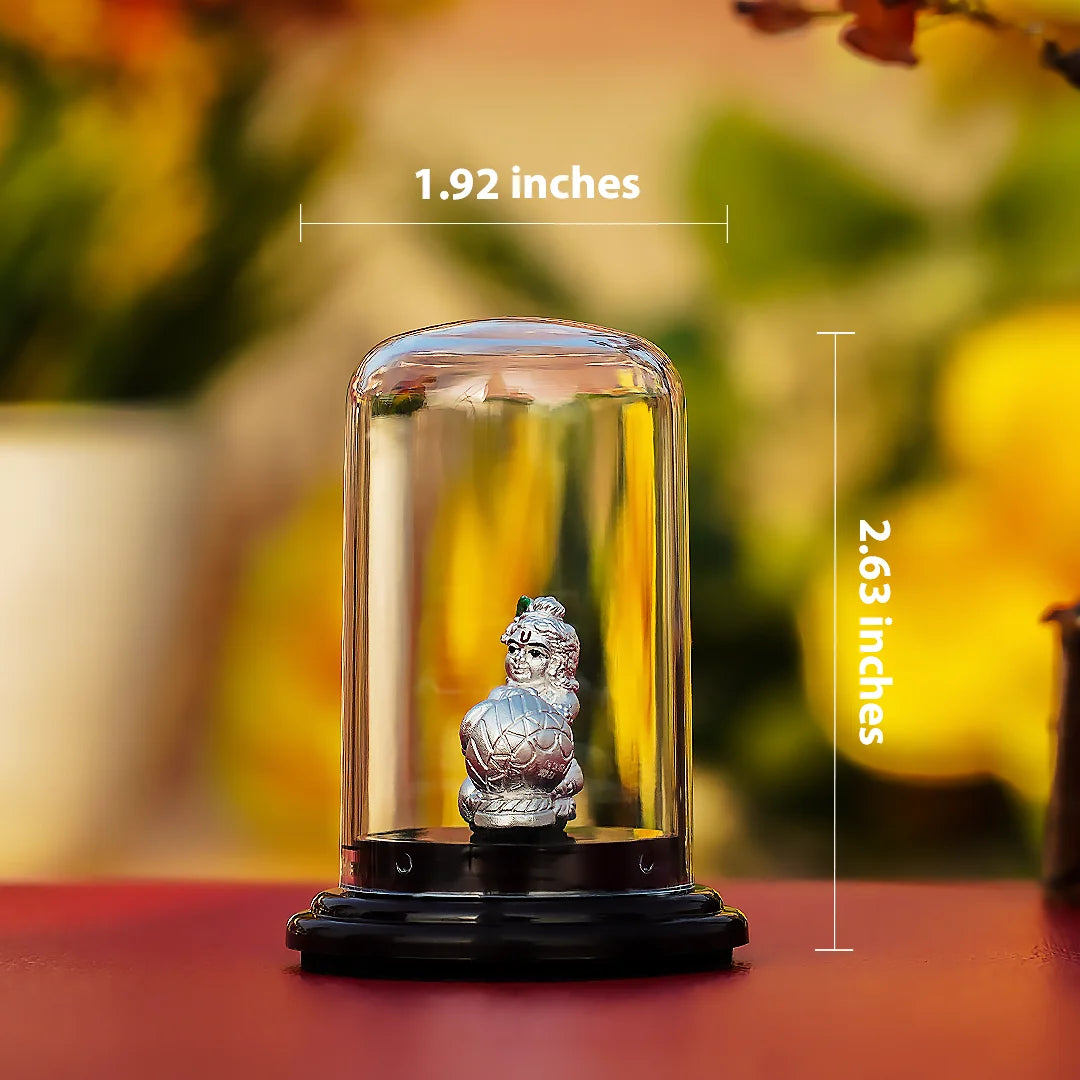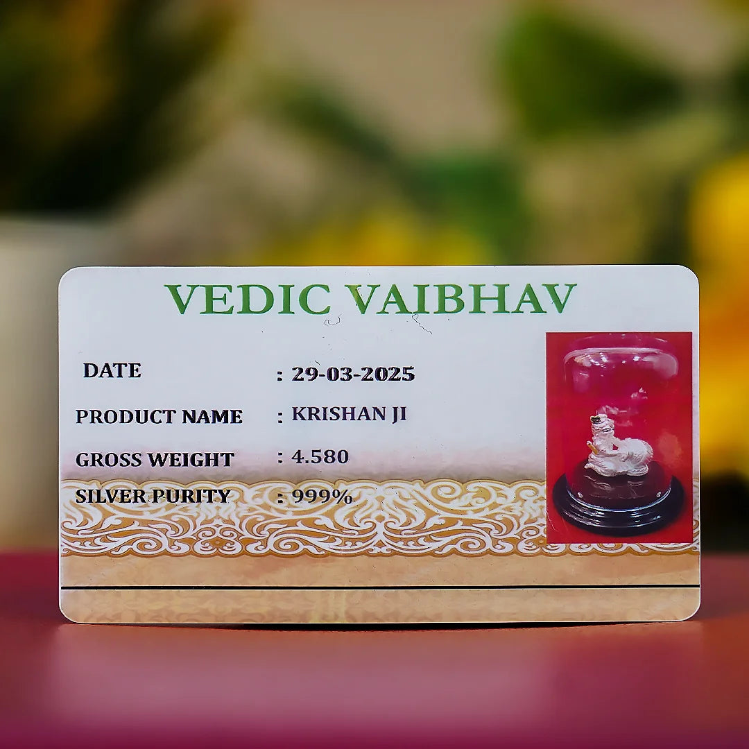 The 999 Silver Little Krishna Idol (Bal Gopal Murti) is an exquisitely handcrafted representation of Lord Krishna as a child, symbolizing divine love, playfulness, and prosperity. This idol, made from 99.9% pure silver, is perfect for home temples, puja altars, and as an auspicious gift for newborns, housewarmings, and festive occasions. ✨ Features: 🪙 999 Pure Silver Craftsmanship🧾 Certified Purity with Official Document💎 BIS Hallmarked for Guaranteed Authenticity ✅ Handcrafted with intricate detailing✅ Symbolic Representation: Little Krishna in Makhan Chor (Butter Thief) pose, holding a pot of butter✅ Ideal for Devotion, Prosperity, and Blessings✅ Perfect Gift for Janmashtami, Baby Showers, and Housewarming Ceremonies✅ Brings Happiness, Prosperity, and Protection ✨ Placement & Vastu Tips: Place in the northeast or east direction for divine blessings. Ideal for home temples, children’s rooms, and living areas. Avoid placing in bathrooms or directly on the floor. ✨ Care Instructions: Clean with a soft cloth or silver polish for long-lasting shine. Avoid direct contact with water, chemicals, and extreme humidity.