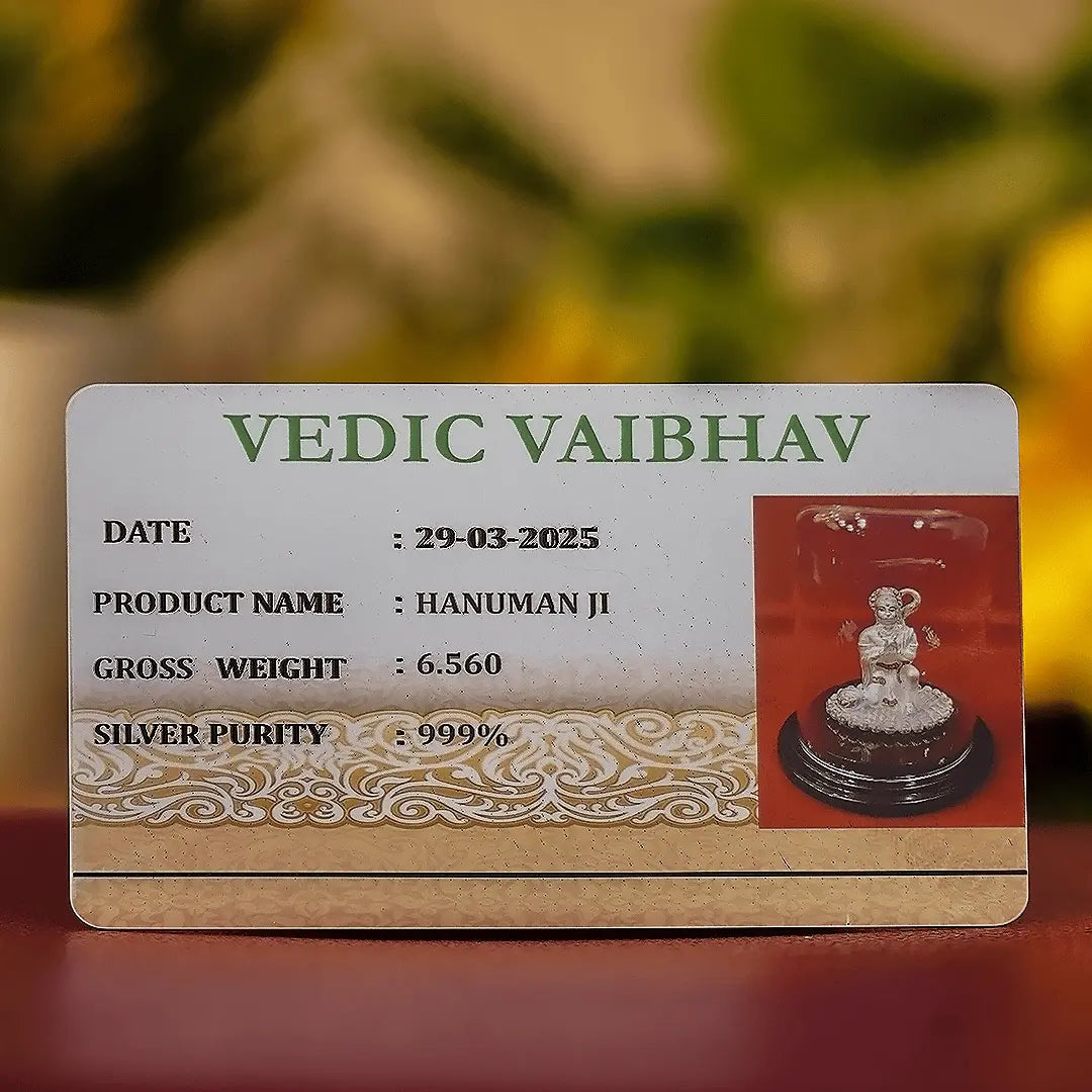 999 Silver Sitting Lord Hanuman Idol with Protective Glass Cover Description: Invoke divine strength, wisdom, and peace with this exquisite 999 Silver Sitting Lord Hanuman Idol, a sacred embodiment of devotion, courage, and spiritual guidance. Crafted with pure 999 silver, this idol beautifully depicts Shri Hanuman in a seated posture, symbolizing calm strength, unwavering faith, and humility. With intricate detailing, his serene yet powerful presence radiates protection and divine energy, creating a harmonious and sacred aura in any space. Encased in a protective glass dome, this idol maintains its timeless elegance and spiritual essence for generations. A perfect spiritual addition to your home, temple, or office, this auspicious silver idol represents wisdom, devotion, and tranquility. It serves as a powerful reminder of resilience and righteousness, making it an ideal gift for loved ones on festivals, housewarmings, and special occasions. Features: ✔ 999 Pure Silver Craftsmanship✔ Certified Purity with Official Document ✔ BIS Hallmarked for Guaranteed Authenticity ✔ Elegant glass dome for long-lasting protection & aesthetics ✔ Intricate detailing capturing Hanuman’s strength & devotion ✔ Symbol of calm strength, wisdom & spiritual energy ✔ Ideal for home altars, offices & gifting Primary Color: Silver Pack Contains: 1 Sterling Silver Idol with Glass Cover Care Instructions: Avoid contact with harsh chemicals, perfumes, and lotions. Clean gently with a soft, dry cloth when needed. Sustainable: Yes Vibe: Peaceful, Powerful & Sacred Type: Religious Figurine/Sculpture