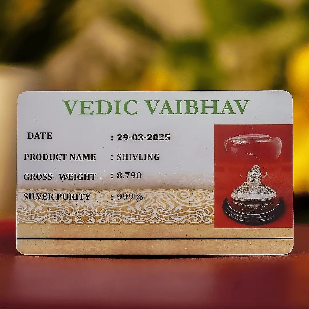 Invite the divine presence of Lord Shiva into your home with this beautifully crafted Silver Shivling Idol by Vedic Vaibhav. Made from 99.9% pure silver, this sacred idol symbolizes strength, purity, and spiritual awakening. The idol is elegantly enclosed in a transparent protective dome and rests on a refined base, making it ideal for home temples, meditation spaces, or as a cherished spiritual gift. It comes with an authentic BIS (Bureau of Indian Standards) certificate, assuring certified purity and quality. Key Features Made from 99.9% pure silver Gross weight: 8.790 grams Includes BIS-certified purity certificate Elegant dome casing for protection and presentation Ideal for puja, décor, or gifting purposes